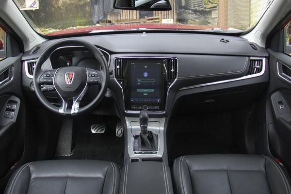 榮威RX5整體內飾采用了明快簡潔的設計風格,中控臺對稱式的設計讓人看上去很舒服。另外,在木紋、鋼琴烤漆和鍍鉻裝飾的點綴下,整個內飾更顯豪華。RX5的中控臺采用了大面積軟性皮革包裹,在同級車型中比較少見,白色雙縫線也提升了內飾質感。