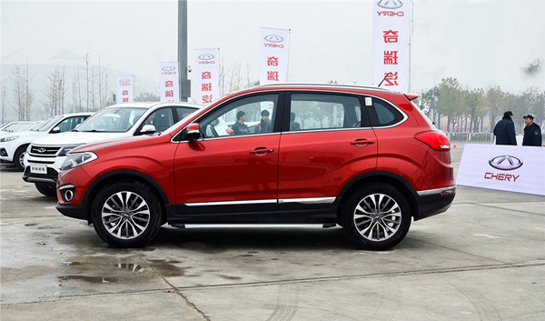 瑞虎5的車身側面比較緊湊,上揚的腰線從前翼子板延伸到尾燈組,讓這臺車即散發出運動的氣息,一上一下兩條凌厲的腰線很好的勾勒出瑞虎5定位于城市型SUV的動感造型,車身尺寸長寬高為4506/1841/1740mm,軸距達到了2610mm。