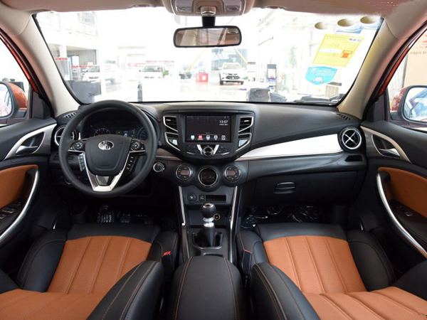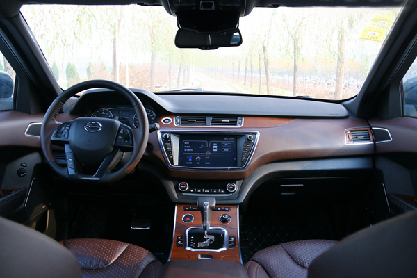 陸風X7的內(nèi)飾設(shè)計相比以往進步很大,但我覺得配色不太洋氣,幾處局部的黃色木紋搭配也有些過楞,但整體做工還是比較不錯的,另外在中控面板上大面積使用了軟性材質(zhì)的處理,這點在同級別車型中并不常見,值得表揚!最顯眼的就是10.2寸的中控液晶屏,配置方面比較豐富,自動空調(diào)、電子手剎、多功能方向盤、360度全景影像等眾多豪華車型才有的配置也出現(xiàn)在陸風X7上。