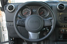 通常硬派SUV的內(nèi)飾都比較樸實,不太注重設(shè)計。BJ40的中控臺也設(shè)計的很簡單,顯得有些粗糙。其中控區(qū)的各功能區(qū)分清晰,操作便捷。中控臺和方向盤都采用的是塑料材質(zhì),手感有限,有一絲廉價的感覺。對于一款純粹的越野SUV來說,設(shè)計不需要太過考究,粗糙有時候反而更能展現(xiàn)越野的氣質(zhì)。