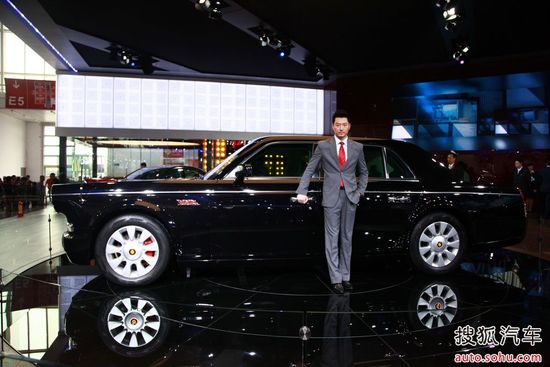 信息點:軸距3900mm,比勞斯萊斯幻影EWB加長版還長,整備質量3.15噸,造型沿襲檢閱車,主打高端接待、國賓用車市場。