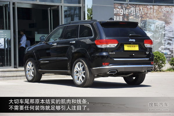 大切車尾那原本結實的肌肉和線條,不需要任何裝飾就足夠引人注目了。圓潤的尾燈造型配合底部凹凸狀的鍍鉻裝飾,讓整體更富質感,而內部采用LED光源。雙邊雙出的排氣設置,讓大切更加霸氣外露。車尾的"Summit"標識暗示著它是3.0L的旗艦車型。