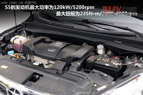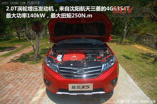 動力方面:陸風X5搭載了4G63S4T發動機,搭配格特拉克生產的6MT變速箱,令其實測0-100km/h加速達到了11.13秒,這在同級SUV算是比較快的了。盡管這臺發動機從參數上看與合資車型的2.0T還有較大差距,不過陸風X5的實際表現卻一點沒有讓人失望。整備質量1580kg的陸風X5在2.0T發動機的帶動下顯得非常輕盈。