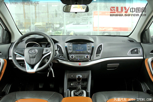 內飾方面:瑞風S5的內飾看上去更符合其城市SUV的定位,黑色與橙色的色調搭配,簡單、流暢的線條設計以及銀色的裝飾條共同突出了“時尚”二字。從用料和裝配工藝的角度來看,瑞風S5沒有明顯缺陷,硬塑料中控臺是這個價位的正常表現。瑞風S5多數車型都配備了自動大燈、電動天窗、座椅加熱、GPS導航、車身穩定控制系統、牽引力控制系統、上坡輔助系統、陡坡緩降系統、胎壓監測、前后泊車雷達以及側氣囊等等,算得上非常豐富了。