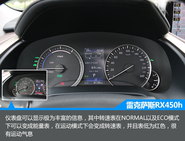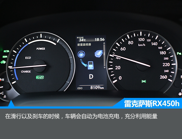 而如果您認(rèn)為這就是這臺(tái)RX450h的全部實(shí)力,那就大錯(cuò)特錯(cuò)了,深踩油門(或者調(diào)到SPORT模式),這臺(tái)3.5L V6發(fā)動(dòng)機(jī)也不會(huì)辜負(fù)您的希望,大排量發(fā)動(dòng)機(jī)不會(huì)像渦輪那樣暴躁,取而代之的是絲滑、平順的加速特性,而這種非常線性的加速感會(huì)使車內(nèi)人員感覺很舒服,這也是這臺(tái)RX450h所追求的感覺。編輯認(rèn)為,開RX450h是一種對(duì)環(huán)保負(fù)責(zé)的生活態(tài)度,雖然有很強(qiáng)悍的加速能力,但是未必真的會(huì)這么激烈駕駛,看著指針在ECO附近回蕩,感受油耗降低的喜悅,這樣安靜、平順的感覺是其他車型無法比擬的。