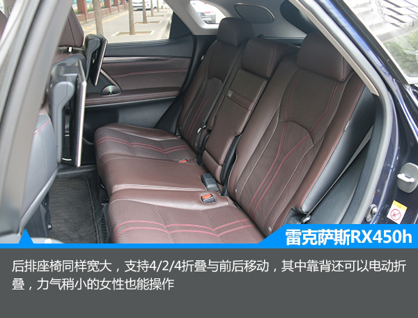 雷克薩斯RX450h定位于中大型SUV,該車的車身尺寸達(dá)到了4890*1895*1705mm,軸距則為2790mm,由于是5座的設(shè)定,空間表現(xiàn)完全沒問題。身高178cm的男性體驗(yàn)者調(diào)整好坐姿后,頭部擁有一拳的空間,保持前排不動(dòng),該體驗(yàn)者來到后排后,頭部擁有一拳的空間,而腿部則更是達(dá)到了一掌半的距離,RX的空間表現(xiàn)令人滿意。此外,RX450h的后排中央地板近乎純平,坐在后排中間的乘客也能很舒服,這點(diǎn)值得肯定。得益于人性化的設(shè)計(jì),RX450h的儲(chǔ)存空間十分豐富,各類物品都能找到地方放置,并且該車的后排可以4/2/4折疊,車內(nèi)空間可以靈活變換。