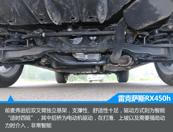 作為豐田的看家本領(lǐng),混合動(dòng)力同樣應(yīng)用在了雷克薩斯RX450h上面,其采用了發(fā)動(dòng)機(jī)+前后電動(dòng)機(jī)的配備方式,其中發(fā)動(dòng)機(jī)的代號(hào)為2GR-FXS,排氣量3.5L,采用阿特金森循環(huán),該引擎擁有193kW的最大功率,同時(shí)可以輸出335N·m的峰值扭矩。而前后橋各配備一個(gè)電動(dòng)機(jī),總功率173kW,總扭矩達(dá)到474N·m,與這套動(dòng)力系統(tǒng)匹配的是可模擬6速的E-CVT電子無級(jí)變速箱。此外,在驅(qū)動(dòng)方式方面,RX450h屬于“智能適時(shí)四驅(qū)”,由于后橋配備了電動(dòng)機(jī),后輪由電動(dòng)機(jī)驅(qū)動(dòng),該車型沒有中央傳動(dòng)軸,取而代之的是一條“電纜”。正常情況下,位于后橋的電動(dòng)機(jī)不啟動(dòng),車輛以前驅(qū)的方式行駛,當(dāng)遇到打滑、上坡以及需要較大動(dòng)力輸出時(shí),后橋由電動(dòng)機(jī)輸出動(dòng)力,車輛變成四輪驅(qū)動(dòng)。