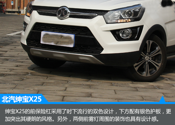 不得不說,北汽紳寶X25自發布以來便受到了廣泛關注,很大程度是因為這款車有著較高的顏值。紳寶X25整個車身線條都是非常硬朗犀利的風格,因此整車看上去具有一定力量感,非常符合SUV的車型定位。同時,由于設計師們準確的把握了這款新車的定位,因此它的造型才更符合年輕人的審美。值得一提的是,鑲嵌于進氣格柵的品牌LOGO雖然與紳寶X55和X65等產品相同,但兩側沒有了類似飛翼的鍍鉻裝飾,在繼承了家族特征的條件下也擁有了屬于自己的獨特元素。