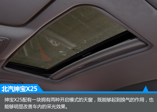 總結:在5萬元-8萬元的小型SUV細分市場中,紳寶X25的外觀和內飾設計完全拿得出手,比同級對手要優秀一些。而且從配置來看,紳寶X25所配備的GPS導航、倒車影像、天窗、倒車雷達、定速巡航等都十分誘人,這也使得紳寶X25有著較高的性價比。如果未來紳寶X25的改款車型能夠更完美一點,其市場表現或許也將變得更好。