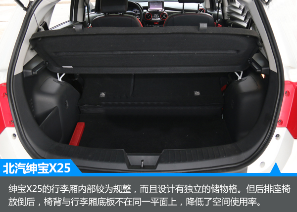 雖然紳寶X25定位于小型SUV,但其前后排的乘坐空間表現還是不錯的,完全可以應付日常使用。不過其儲物空間表現就沒那么出色了,車內的儲物空間并不豐富,而且多數儲物格的空間比較尷尬。但是紳寶X25的行李廂儲物空間還比較充裕,后排座椅還支持按比例放倒功能,能夠讓儲物空間得到靈活地拓展。
