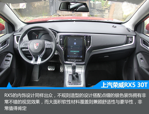 打開車門,編輯立刻被中控臺上10.4英寸的顯示屏所吸引,寬大的顯示屏不僅科技感十足,并且還是榮威互聯網汽車的真諦,屏幕分辨率相當高,顯示清晰并且信息量巨大,中控臺僅僅保留幾個物理按鍵。與此同時,這塊“ipad”還略微向駕駛員一側傾斜,確保駕駛員的行車安全。此外,中控臺以及門邊可以觸的地方,幾乎都采用軟性材料包裹,不僅豪華感十足,同時對于車內乘客的舒適度也有不小地提升。此外,包括全景天窗、電動尾門等在RX5上也都有配備,極大地提升了舒適性。