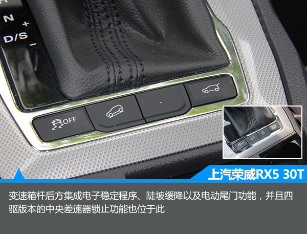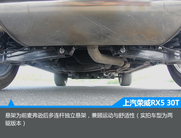 榮威為RX5搭載了兩套動力系統,分別為搭載了1.5T+7速雙離合/5速手動變速箱的20T版本,以及今天試駕的主角搭載2.0T+6速濕式雙離合的30T版本,該引擎在5300rpm時能爆發出162kW的最大功率,同時在2500-4000rpm寬泛的轉速區間內可以持續輸出350N·m的峰值扭矩,與該發動機匹配的是一臺6速濕式雙離合變速箱。此外,榮威RX5采用了加強型的前麥弗遜后多連桿獨立懸架,而四驅版本則搭載了以多片離合器為中央差速器的適時四驅系統,并且中央差速器還可以鎖止,鎖止后,前后軸間的動力輸出理論上為50:50。