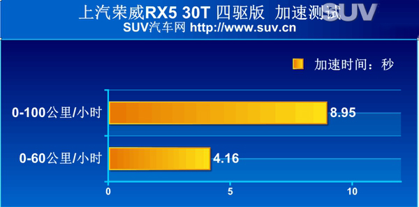 加速測試顧名思義,從車輛0-100km/h的加速時間可以看出車輛動力系統的強悍與否,踩住剎車,油門到底,全力沖刺,最終的數據不會騙人。此次我們分別測試了兩驅以及四驅版本車型,由于驅動形式的不同,會導致車輛的數據同樣發生變化。在測試的時候,由于動力輸出太過強悍,RX5“不可避免”的出現了打滑,而隨著速度的上升也終于回到正軌上,最終,經過多次測試,我們得到了最好的成績,兩驅8.26秒,四驅版本加速時間為8.95秒。究其原因,兩驅車型雖然打滑會浪費一些動力,但是四驅版本不僅車重更大,而且傳動軸以及后輪都會損失一定的動力,因此,兩驅版本在打滑恢復后,可以“全力加速”,這也是加速成績好于四驅版的原因。不過這樣的加速表現已經超過了那些“合資的對手”,對于榮威RX5來說,已經足夠強大了。