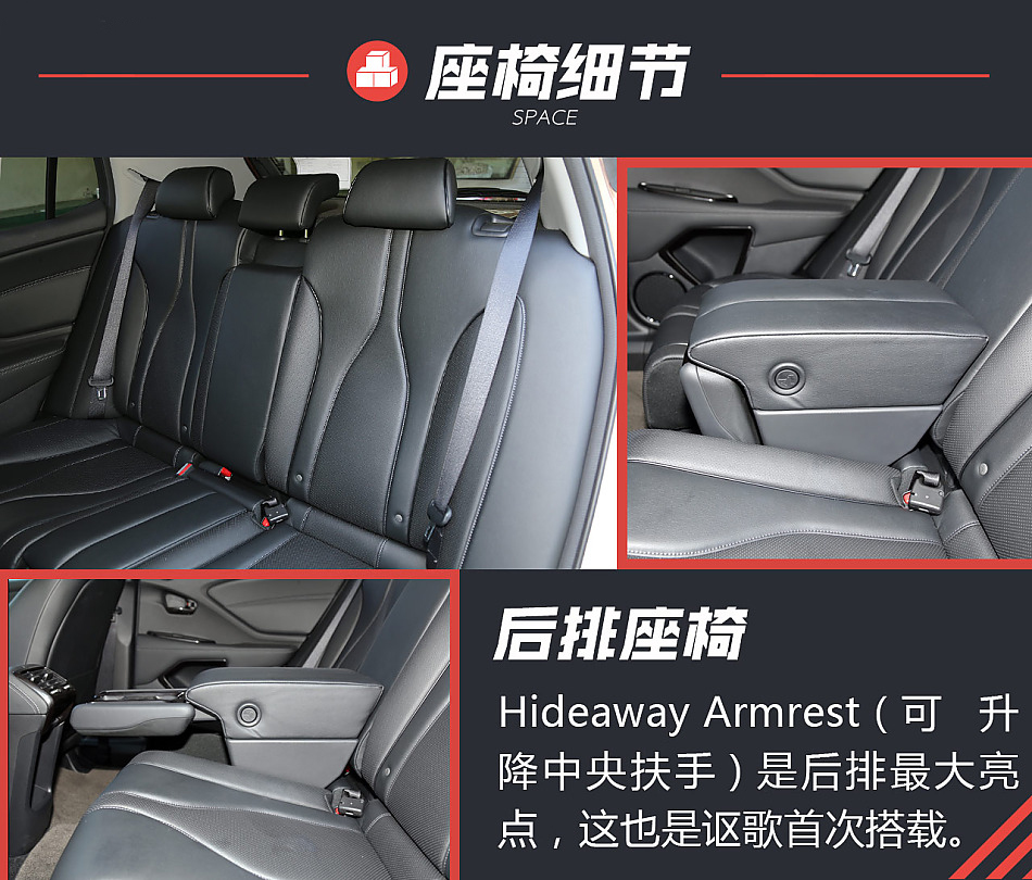 CDX的空間表現(xiàn)令人滿意,乘坐空間對180cm以下的乘坐者都可以用富裕來形容,儲物空間也令人滿意,水瓶、錢包、手機都能找到其安身之處,而且拿取都挺方便。后備箱空間并不算十分富裕,不過和同級車相比也相差不多,日?;緣蛴昧?,外出旅行可能需要在備胎或儲物格兩者中做個取舍。