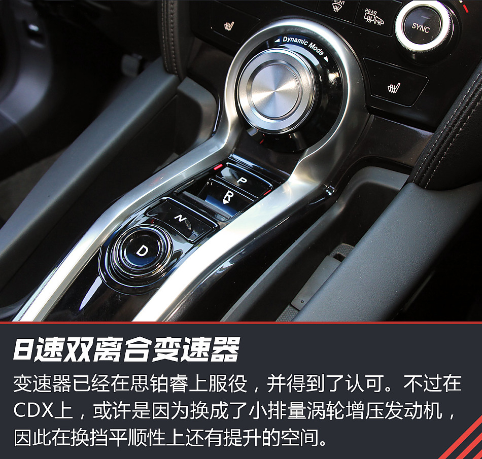 CDX的可以切換舒適和運動兩種模式,在這兩種模式下,變速箱變化最為明顯,降擋更積極,發(fā)動機會保持在更高的轉(zhuǎn)速下行駛。順便說一句,如果不太習(xí)慣變速箱的邏輯,倒是可以通過撥片切換為手動模式,反應(yīng)非常快,用著很順手。但是要注意它并不會自動切換回自動模式,而是需要按住撥片3秒左右才會換回自動模式,或許這是為了給駕駛者更多的權(quán)限吧,總之如果切換到手動模式千萬不要忘了及時換擋。