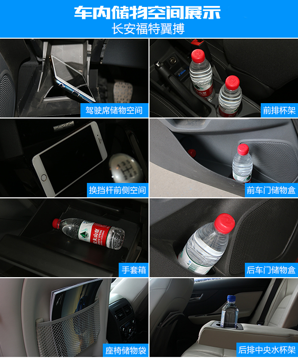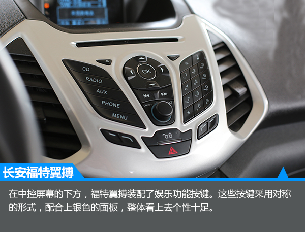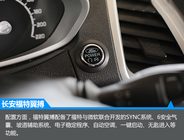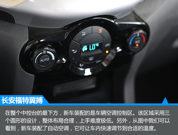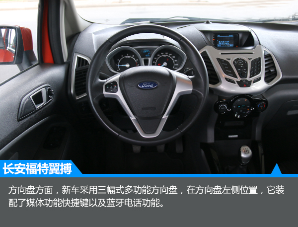 內(nèi)飾方面,福特翼搏的設(shè)計(jì)感極強(qiáng),尤其是中控出風(fēng)口以及多媒體控制區(qū),該區(qū)域設(shè)計(jì)的非??苹貌в行┝α扛小7较虮P方面,新車采用三幅式多功能方向盤,在方向盤左側(cè)位置,它裝配了媒體功能快捷鍵以及藍(lán)牙電話功能。儀表盤方面,新車采用雙炮筒的設(shè)計(jì),藍(lán)色的指針頗為動感。而最上方的行車電腦可現(xiàn)實(shí)豐富的信息。中控臺方面,新車在頂部鑲嵌了一塊尺寸較小的顯示屏,它可現(xiàn)實(shí)藍(lán)牙、菜單選項(xiàng)、收音機(jī)等功能。中控臺下發(fā)為車輛空調(diào)控制區(qū),該區(qū)域布局合理,上手難度極低。