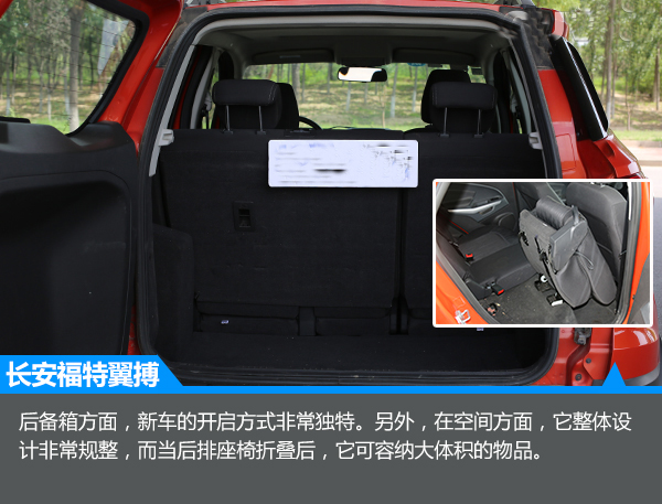 座椅空間方面,福特翼搏采用真皮座椅,從座椅縫線來看,它的做工還是非常精細(xì)的。另外,在座椅調(diào)節(jié)方面,新車并沒有安裝電動座椅,這也算是一個遺憾。在空間方面,新車雖然定位于小型SUV車型,但實(shí)際的表現(xiàn)來看,它還是極富誠意的,雖談不上越級的能力,但整體水平在同級別屬于中上等水平。最后,是要表揚(yáng)它的后備箱空間,它的整體設(shè)計(jì)非常規(guī)整,而它拉門式的開啟方式也是一大亮點(diǎn)。