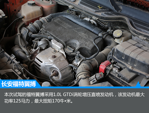 當(dāng)左腳踩下離合器發(fā)動這臺福特翼博時,發(fā)動機(jī)帶來極小的震動,這便給我很多好感,這對于一臺3缸發(fā)動機(jī)來說實(shí)屬不易。很快,我便開始了正式的體驗(yàn),當(dāng)我把那臺5速手動變速器掛入1檔時,整體動作非常流暢,吸入感極強(qiáng)。當(dāng)我松開離合器踩下油門前進(jìn)時,它靈動的表現(xiàn)使人眼前一亮。福特翼博的離合點(diǎn)適中,這對于新車來說是個福音,在起步初段,它的油門有些靈敏,但完全在可控范圍之內(nèi),可一旦進(jìn)入發(fā)動機(jī)峰值扭矩區(qū)間,它的表現(xiàn)讓我們會令你震驚,那種強(qiáng)勁的快感是同級別車型難以比擬的。