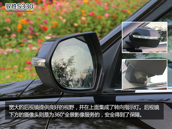 寬大的后視鏡提供良好的視野,并在上面集成了轉向指示燈。后視鏡下方的攝像頭則是為360°全景影像服務的,安全得到了保障。