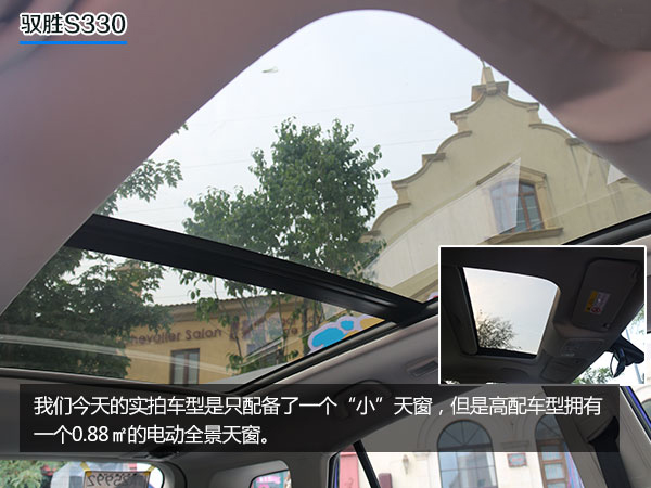 我們今天的實拍車型是只配備了一個“小”天窗,但是高配車型擁有一個0.88㎡的電動全景天窗。