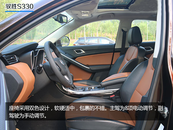 座椅采用雙色設計,軟硬適中,包裹的不錯。主駕為8項電動調節,副駕駛為手動調節。