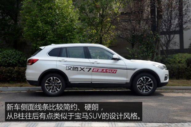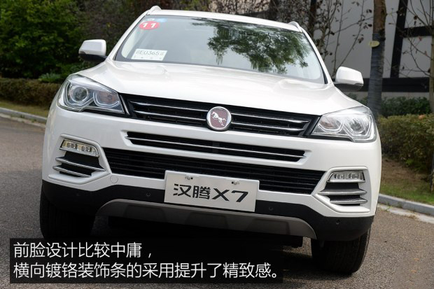 漢騰X7作為漢騰汽車的首款車型,自然肩負(fù)著打開品牌知名度的重要使命。這款車被定位為緊湊型SUV,它的車身尺寸達(dá)到了4671*1902*1697mm,軸距為2810mm。該車采用了時(shí)尚年輕化的外觀設(shè)計(jì)風(fēng)格,外觀線條硬朗,前臉原創(chuàng)度比較高。楔形前大燈組采用LED光源和氙氣透鏡大燈搭配的方式,霧燈也采用了LED光源。前進(jìn)氣格柵、前保險(xiǎn)杠等處加入鍍鉻裝飾條,提升了前臉的精致度。