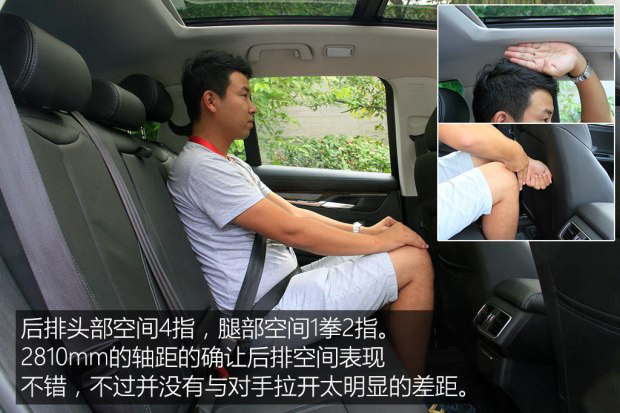 漢騰X7的乘坐空間表現(xiàn)還不錯(cuò),畢竟它的軸距已經(jīng)達(dá)到了2810mm,明顯超越同級對手。而通過實(shí)際體驗(yàn),我們發(fā)現(xiàn)它的后排空間的確比較寬敞,只不過還沒有與對手拉開明顯差距。