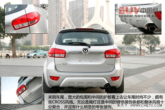 來到車尾,寬大的包圍和中間的護(hù)板看上去讓車尾時尚不少,頗有些CROSS風(fēng)格。無論是尾燈還是中間的鍍鉻裝飾條都和整體風(fēng)格十分契合,并沒有什么明顯的夸張裝飾。除此之外,我們還能看到倒車?yán)走_(dá)探頭以及后車窗的雨刷器,有這些,足夠了!