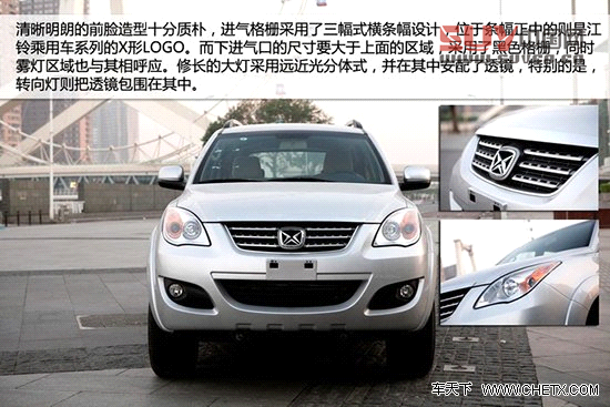 清晰明朗的前臉造型十分質(zhì)樸,進(jìn)氣格柵采用了三幅式橫條幅設(shè)計,位于條幅正中的則是江鈴乘用車系列的X形LOGO。而下進(jìn)氣口的尺寸要大于上面的區(qū)域,采用了黑色格柵,同時霧燈區(qū)域也與其相呼應(yīng)。修長的大燈采用遠(yuǎn)近光分體式,并在其中安配了透鏡,特別的是,轉(zhuǎn)向燈則把透鏡包圍在其中。