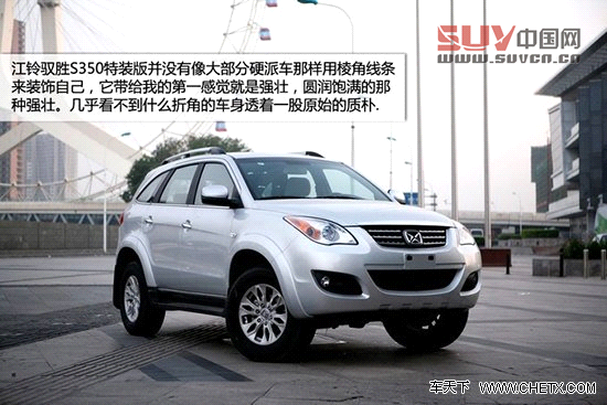 江鈴馭勝S350特裝版(以下簡稱馭勝S350特裝版)并沒有像大部分硬派車那樣用棱角線條來裝飾自己,它帶給我的第一感覺就是強(qiáng)壯,圓潤飽滿的那種強(qiáng)壯。幾乎看不到什么折角的車身透著一股原始的質(zhì)樸,就像一個人到中年的男人一樣,本就不需要太多的服飾來裝扮,由內(nèi)而外的成熟氣質(zhì)才是它那掩蓋不住的魅力。