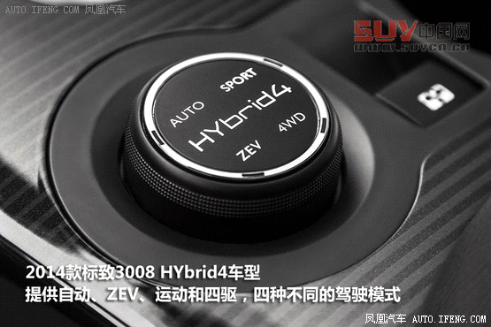 與普通版車型不同,混合動力版的標(biāo)致3008在原有的駕駛模式切換旋鈕位置改換成了智能駕駛模式按鈕,以便于駕駛者在經(jīng)濟模式和運動模式間自由切換,例如,當(dāng)車輛切換到ZEV模式時,整車的排放幾乎為零,只有在車輛持續(xù)加速階段發(fā)動機才會啟動,這時車輛的動力主要來源于高電壓鎳氫電池組;而在駕駛者切換到4WD模式時,柴油發(fā)動機會與電動機并行工作,并分別將動力傳輸給前后車輪,以達到最佳脫困能力。