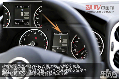 配置方面新途觀的表現也令人滿意,ESP、電子手剎、AUTOHOLD等功能都是全系標配,除此之外,頂配的旗艦版車型還配有12探頭的雷達和自動泊車功能,值得一提的是,以往的自動泊車只支持側方位停車,而新途觀上的這套系統則能夠倒車入庫,解決新手停車難的問題。