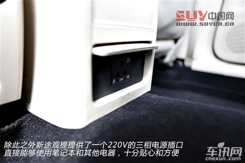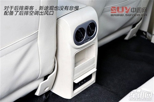 而對于后排乘客,新途觀也沒有怠慢,除了配備有后排空調出風口之外,還提供了一個220V的三相電源插口,直接能夠使用筆記本和其他電器,十分貼心和方便。