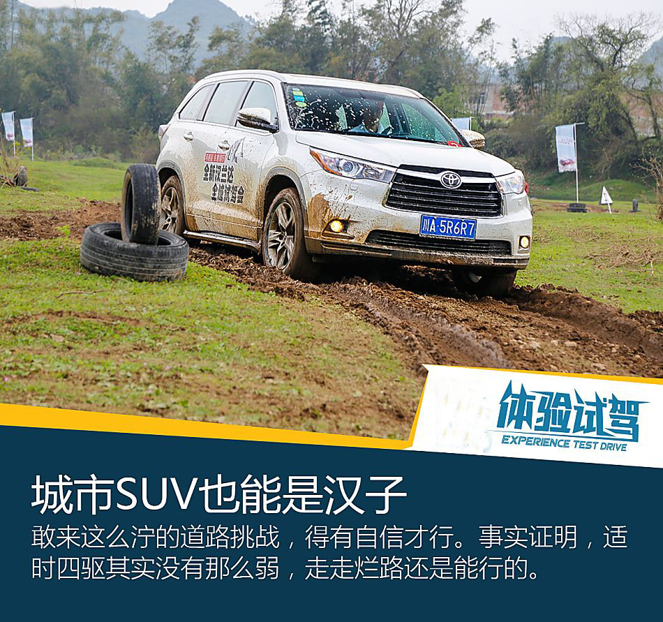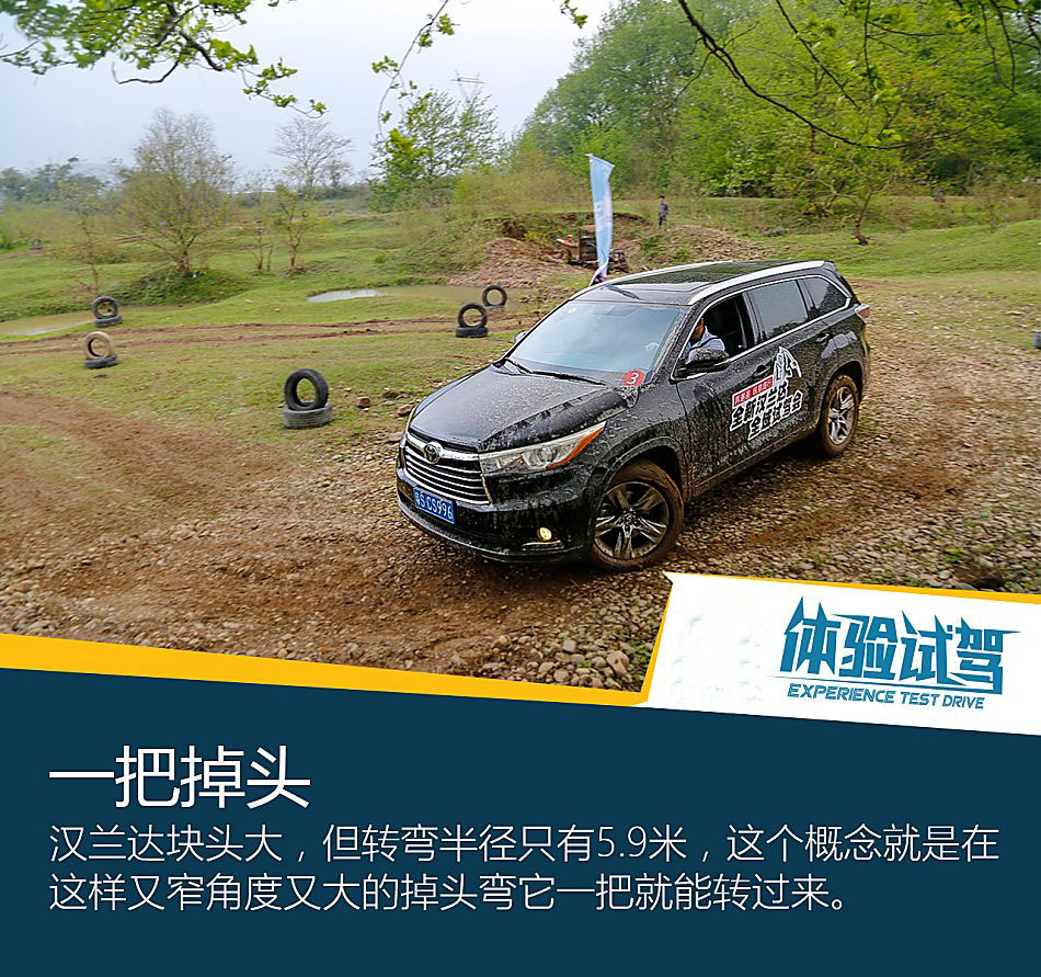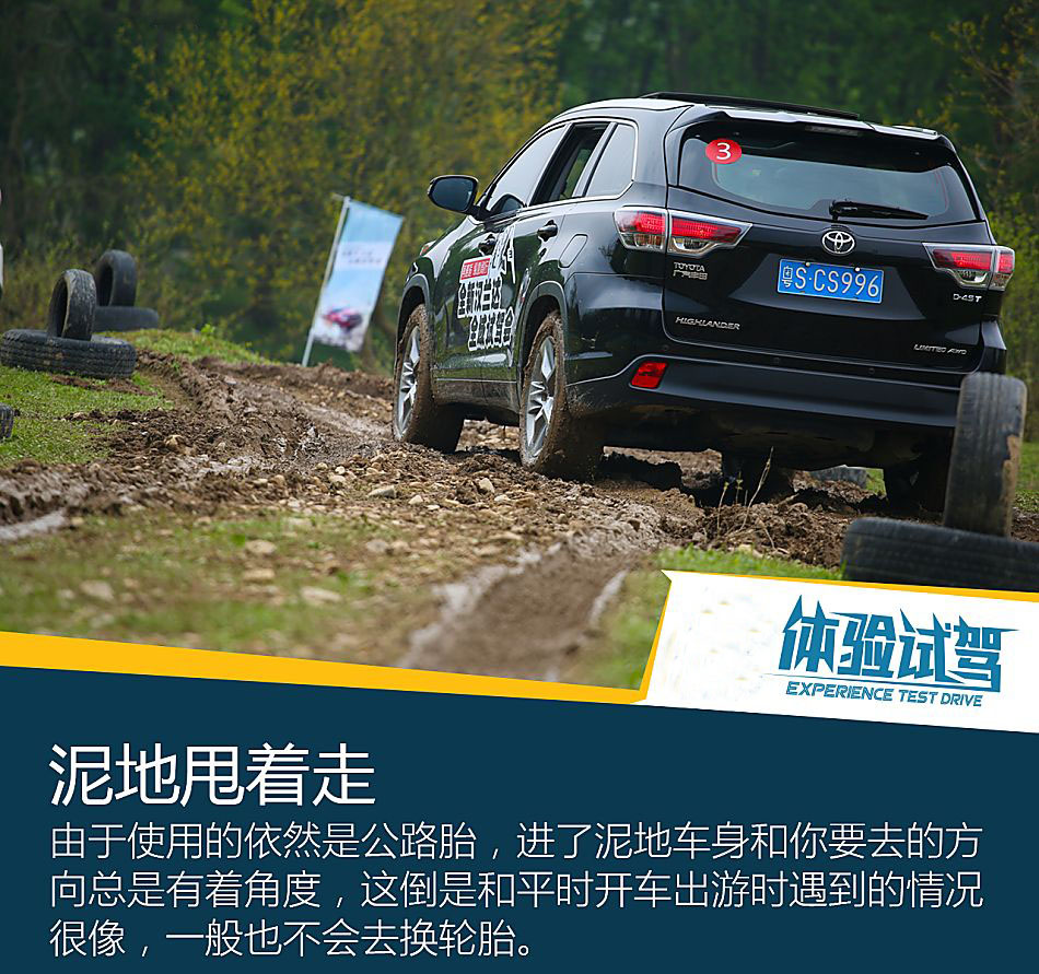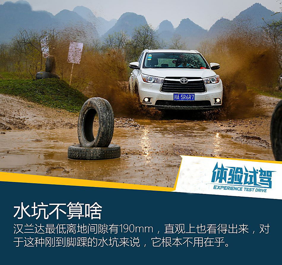 試駕第一項就是爛路體驗,到了場地我們發現,這可真不是走走滑輪組那么簡單,這是真正的一條泥濘道路,而且剛下了一天雨,里面還分布了不少炮彈坑、水潭和砂石灘,一般情況下這種道路都是給越野車預備的,看來漢蘭達也是拼了。