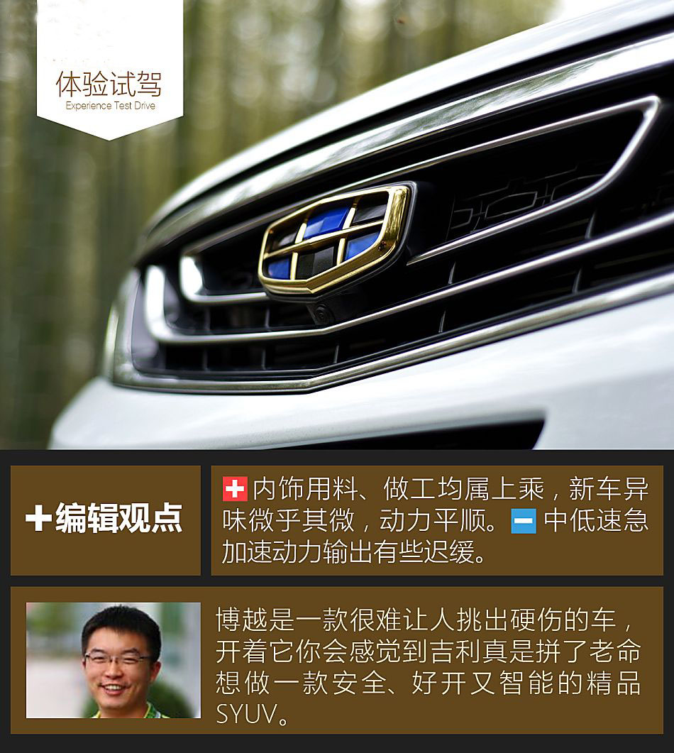 最后簡單說說選車建議吧,個人認為,如果你對動力要求稍高的話,建議考慮2.0L或1.8T低功的手動版,如果追求開起來省事兒、平順,不太喜歡超車,那么自動版的博越更適合一些。