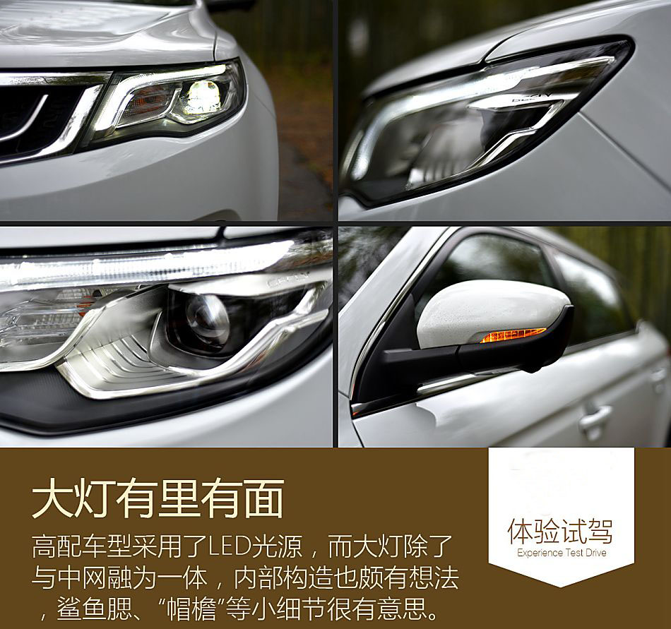 我們試駕的這臺車為1.8TD自動智尊型。博越的中、高配車型采用了遠近光LED大燈,低配車型為鹵素光源。