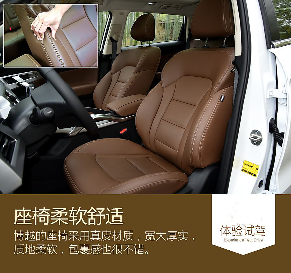 座椅也是博越非常下功夫的地方。如何做到舒適性的同時還能照顧到包裹感和支撐性?博越的高配車型座椅采用真皮材質,質地非常柔軟,外加寬大的椅面,提供了足夠的包裹,單這一套座椅的成本也相當可觀。