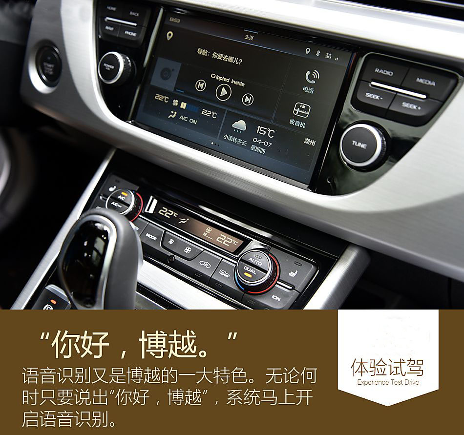 與科大訊飛合作,讓博越有了智能化程度較高的語音識別系統。無論何時,車內人員只要說出“你好,博越”四個字,系統馬上開啟語音識別。功能性上講,類似于“附近的加油站、我餓了、隨便聽一首歌”這種生活用語都能聽明白,而且博越采用雙麥克降噪,即便車內放著音樂或有雜音,照樣可以識別,成功率非常高。而且,博越還支持3G網卡與車載WiFi,便于隨時收聽網絡歌曲。