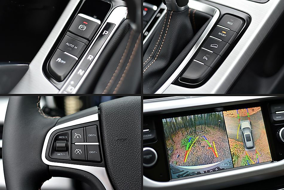 我們試駕的這款是兩驅頂配,配置與四驅頂配相當,搭載了前后雷達、陡坡緩降、車道偏離預警、ACC自適應巡航、360°全景3D影像、ECO/SPORT駕駛模式選擇等功能,而AUTO HOLD自動駐車則是全系標配。