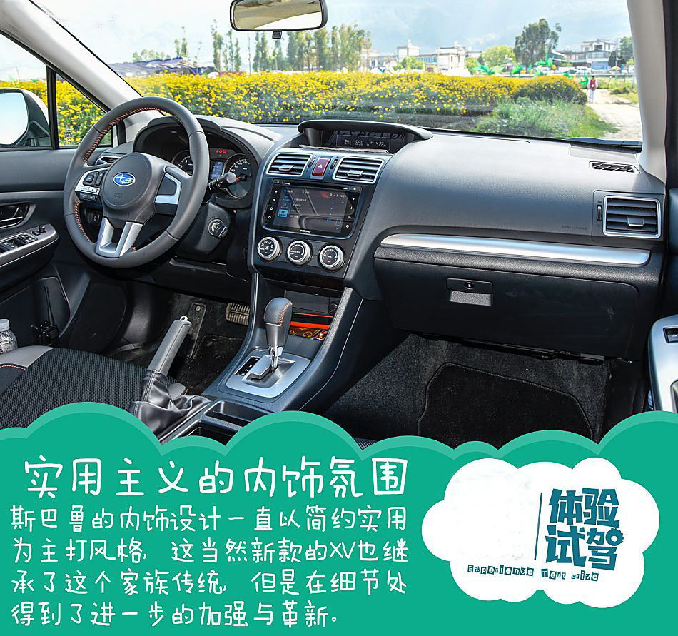 新款XV內飾的主基調延續了斯巴魯簡約務實的風格,工工整整的線條與精致的做工展現了日本 的工業化的高度精細。內飾細節方面,極具個性的橙色座椅縫線、鋼琴黑裝飾條和鍍鉻裝飾條等設計 提升了高品質感和運動感。