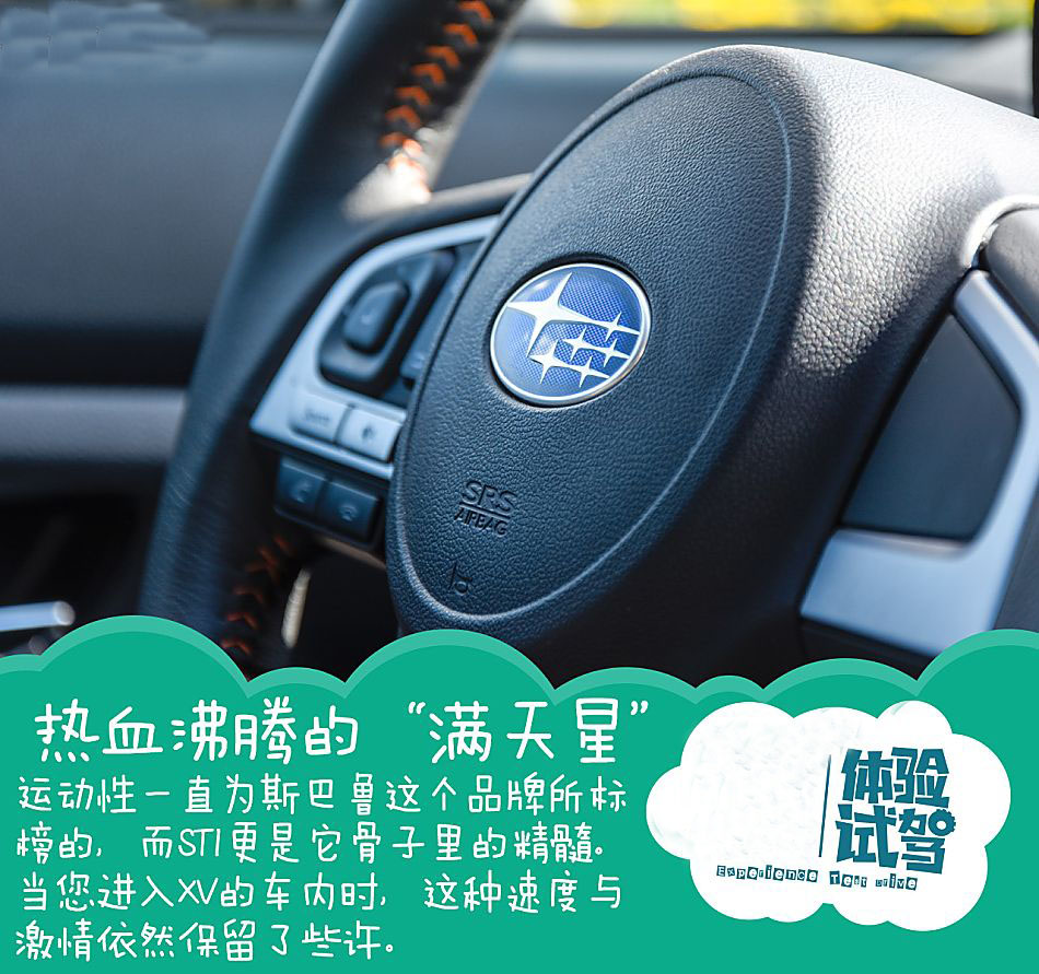 在操控感受方面,新款XV在高速過彎時,它并不會讓人感受到它是一輛SUV,更像是近似于轎 車的操控感受,你感受不到太高重心所帶來的負面影響,我相信這是由于水平對置發動機低重心的特 點。而關于它操控的指向性來說更是可圈可點的,新款XV的轉向響應非常迅猛,且車身也會立馬回饋 給你的動態感受,這種駕駛的順從感我想在同級別車型來說只有斯巴魯XV可以做到這點。