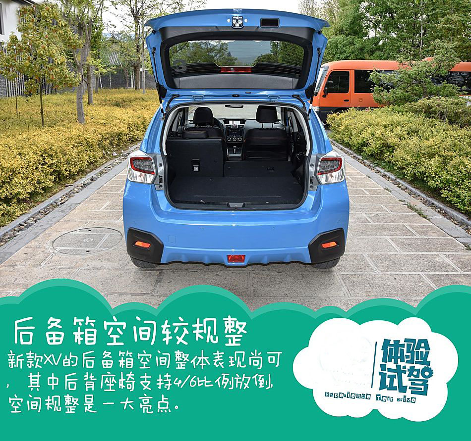 儲物空間方面,XV的儲物格不多,但算是夠用。不過后排的儲物空間就顯得較為不足了,另外 后備廂的門檻離地高度略高(達到790mm),使用上較為不便。