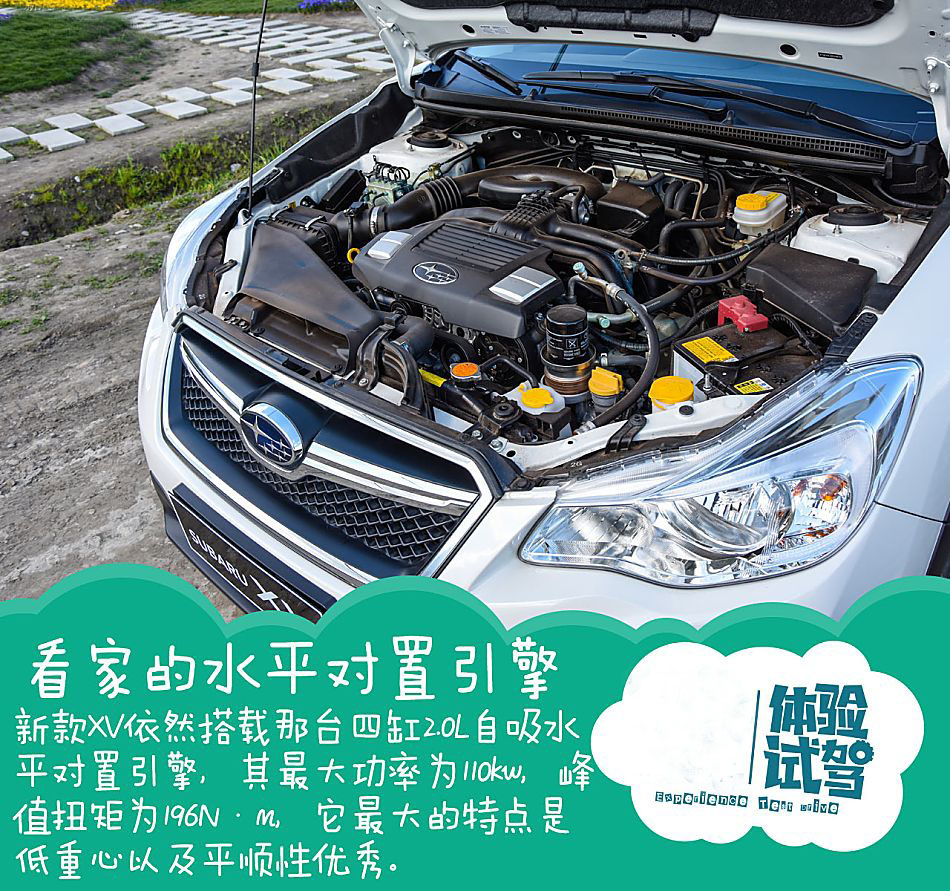 在引擎方面,新款XV完全沒有任何變化,仍是我們熟悉的那斯巴魯“心臟”。動力來自于一臺 四缸2.0L水平對置發動機,最大功率110KW,能在6200rpm輸出,最大扭矩轉速為4200rpm,此時可輸出 196N·m。