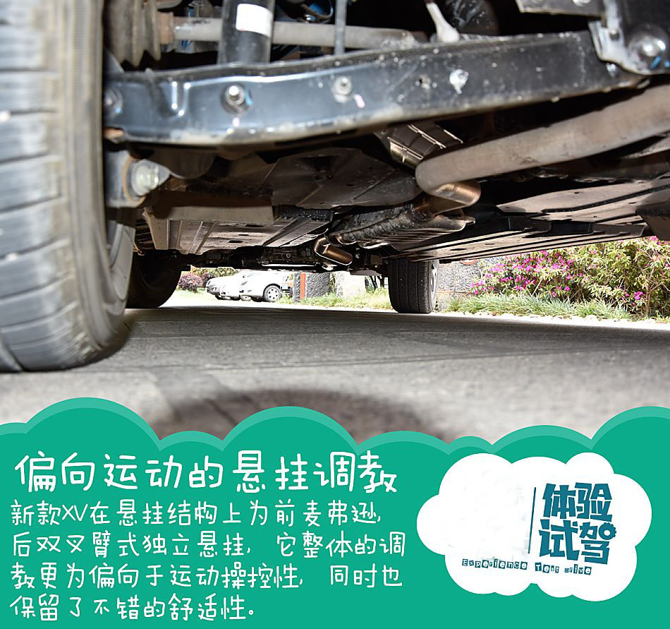 前麥弗遜,后雙叉臂獨立懸掛在新款XV上被調教的更偏向于運動操控性,它在面對坑路路段時有一些小彈跳,不過整體依然保留了很大一部分的舒適性。而新款XV將懸架調硬能夠在過彎時減低車 體的搖晃以及減少重心大幅度的移動,這也就是為什么在高速路段駕駛中它會有如此穩健扎實的操控 體驗。