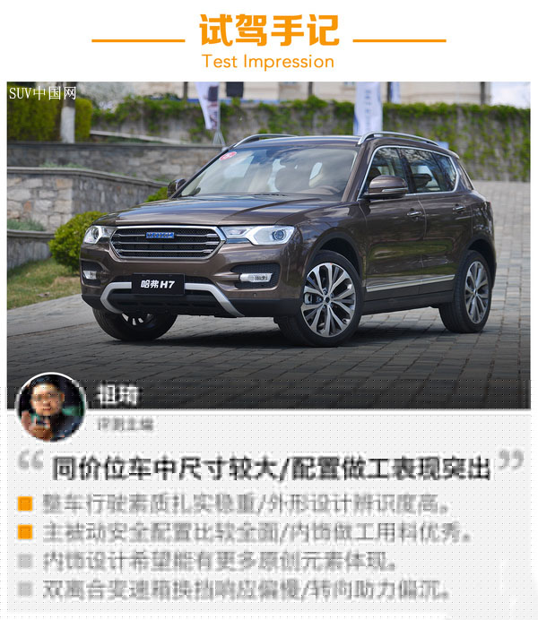 【SUV中國(guó)網(wǎng)】中國(guó)品牌SUV市場(chǎng)新兵一茬接一茬的涌現(xiàn),在激烈的市場(chǎng)競(jìng)爭(zhēng)中,產(chǎn)品沒(méi)有亮點(diǎn)就會(huì)被無(wú)情地淘汰,長(zhǎng)城汽車(chē)作為生產(chǎn)SUV的老牌廠(chǎng)商深知這一點(diǎn),旗下的哈弗H6在市場(chǎng)中混得風(fēng)生水起,不過(guò)車(chē)型偏老了,而高端的H8和H9則提升了品牌形象,是時(shí)候出一款定位高級(jí)別的走量車(chē)型了,所以哈弗H7經(jīng)過(guò)長(zhǎng)時(shí)間的準(zhǔn)備終于要上市了,今天我們就通過(guò)試駕帶著大家看看這款車(chē)到底怎么樣。