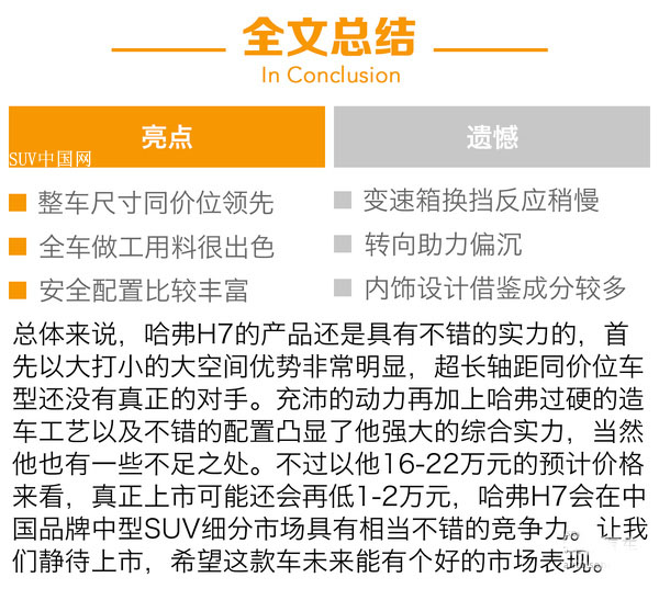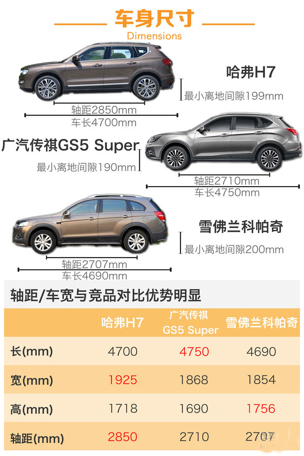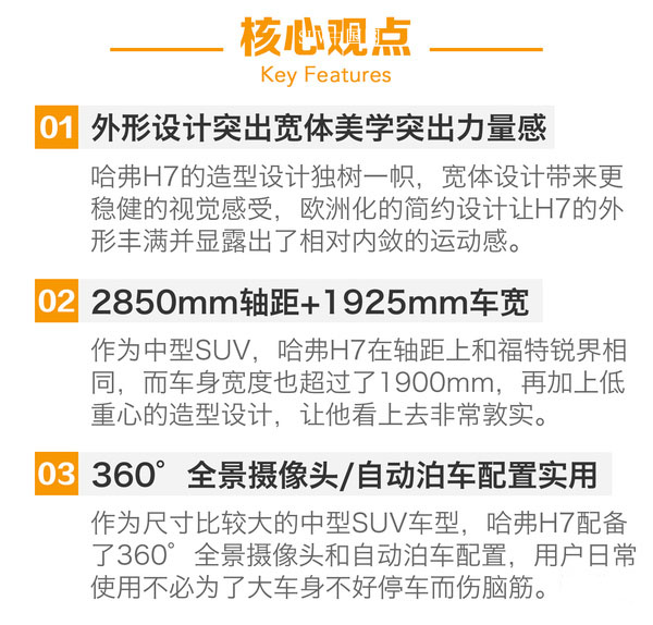 哈弗H7是長(zhǎng)城汽車(chē)應(yīng)用全新平臺(tái)開(kāi)發(fā)的高品質(zhì)中型SUV,是一款介于時(shí)尚緊湊型SUV哈弗H6 Coupe和豪華中型SUV哈弗H8之間的產(chǎn)品,夸張的長(zhǎng)軸距以及大空間是他的特點(diǎn),他不僅是哈弗以大搏小越級(jí)競(jìng)爭(zhēng)規(guī)劃下的一款新車(chē),也同時(shí)完成了哈弗產(chǎn)品的全線(xiàn)布局。這款主打大空間的中型SUV號(hào)稱(chēng)同級(jí)別無(wú)對(duì)手,從數(shù)據(jù)和預(yù)計(jì)價(jià)格來(lái)看也確實(shí)如此,我們也期待著也許未來(lái)長(zhǎng)安CS95和廣汽傳祺GS8能跟他較量一番吧。