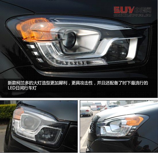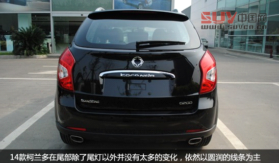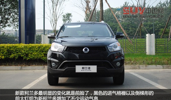 14款柯蘭多最明顯的變化就是前臉設(shè)計進行了修改,黑色進氣格柵以及倒梯形前大燈組的組合,為新柯蘭多增加了不少運動氣息,整體顯得年輕不少,前霧燈也改用小尺寸圓形設(shè)計,而在車身尺寸的數(shù)據(jù)方面,14款柯蘭多并沒有什么變化,其長寬高還是原來的4410X1830X1710mm