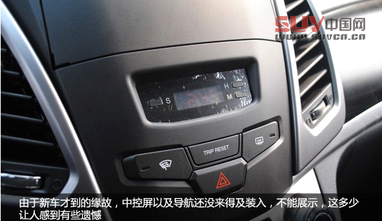 中控臺采用了傳統(tǒng)設(shè)計,自上而下分別是液晶顯示屏(由于是新車才到店,所以還沒有裝入顯示屏)、音樂播放器和空調(diào)控制面板,寬大的按鍵十分便于乘客操作