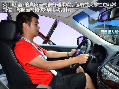 英菲尼迪jx的真皮座椅很舒適柔軟,包裹性支撐性也非常到位,而且駕駛座椅提供8項電動調(diào)節(jié),可以根據(jù)需要找到一個最舒適的駕駛姿勢,門板上集成了座椅記憶功能按鍵。