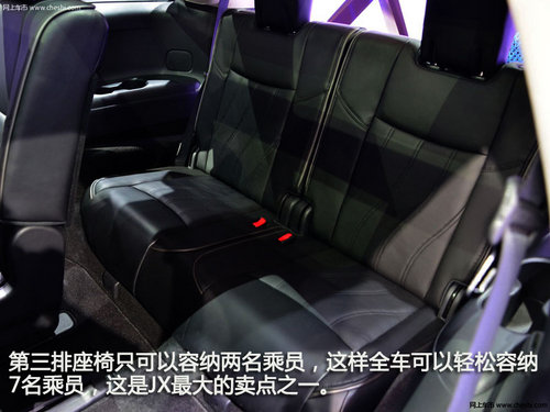 第三排座椅只可以容納兩名乘員,這樣全車可以輕輕松松容納7名乘員,這是JX最大的賣點之一。